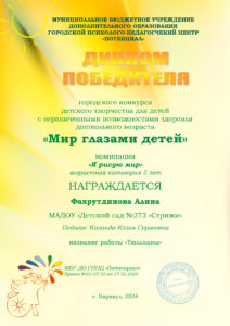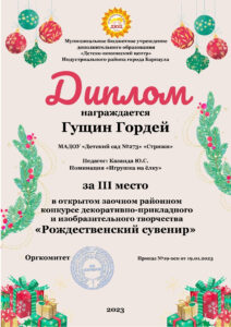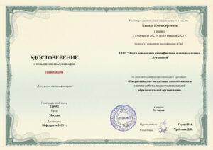Диплом профессиональной переподготовки: «Воспитатель детей дошкольного возраста», АНО ДПО «УрИПКиП», 2022