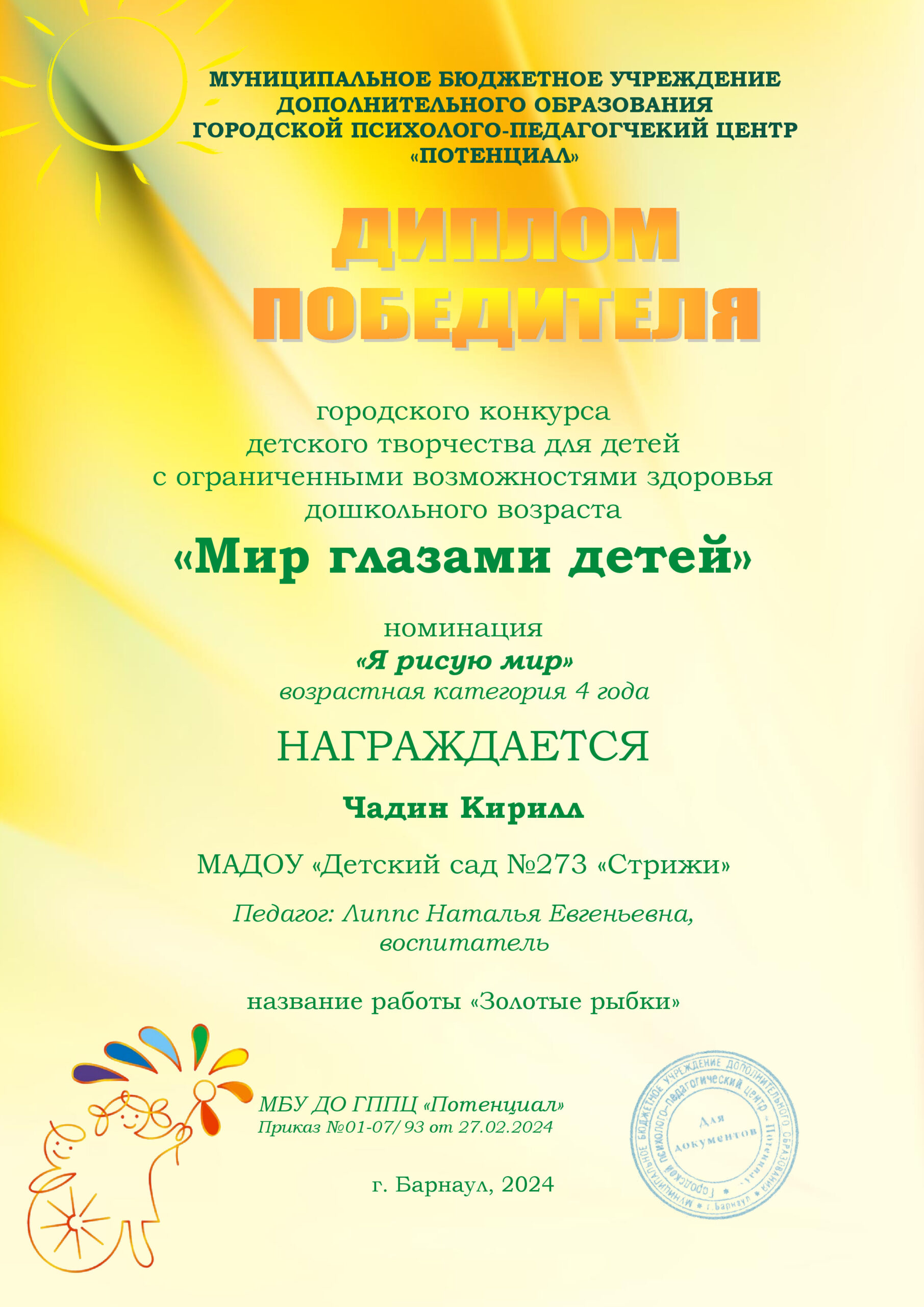 Я уверенна, что детей надо любить такими, какие они есть. Воспитывать в них чувства собственного достоинства и ответственности за себя и свои поступки. Хвалить, поощрять, одобрять, создавать положительную атмосферу вокруг него.