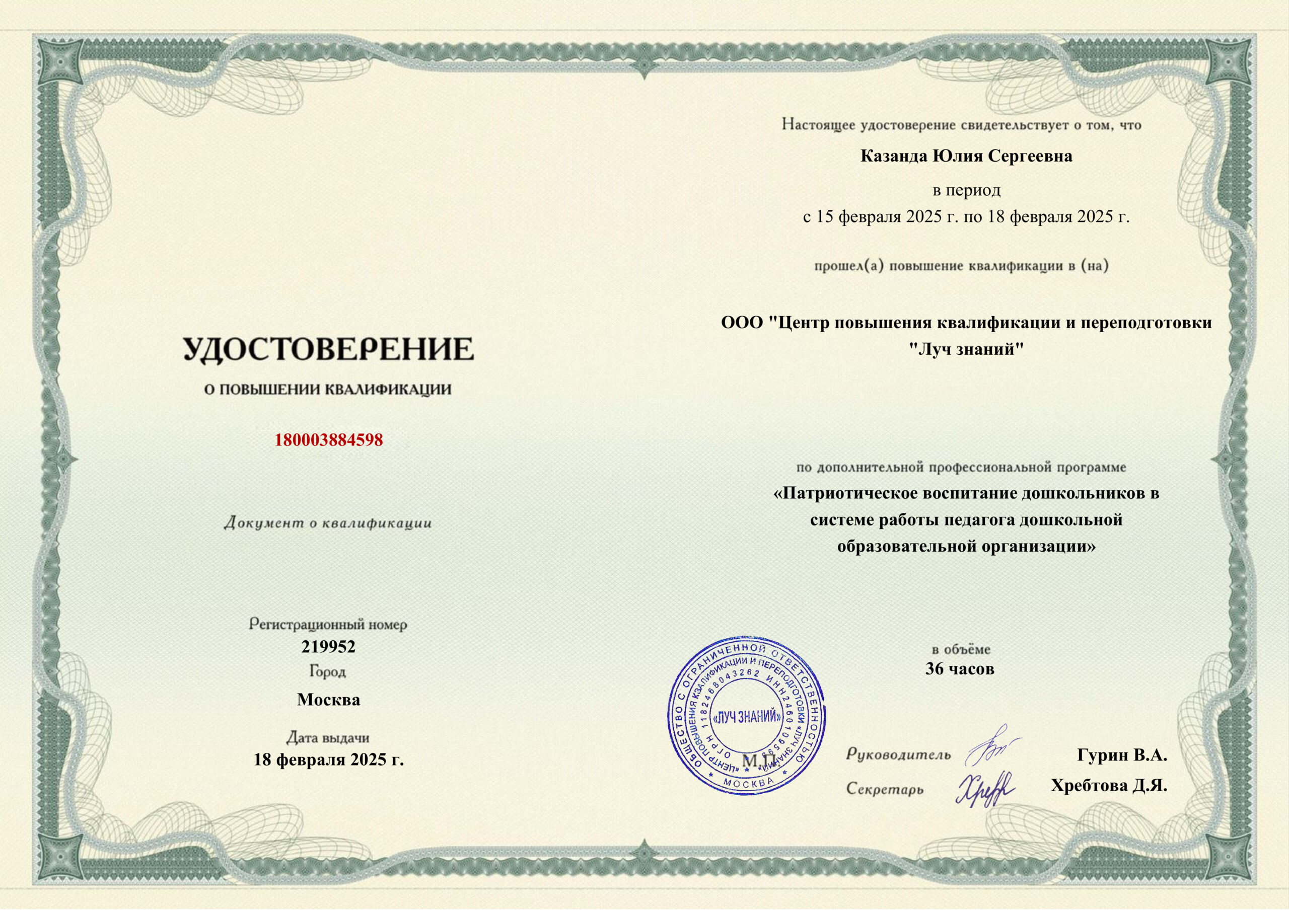 Казанда Юлия Сергеевна