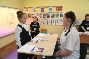 Вместе с Зоей Максимовной , так по взрослому она представлялась компетентному жюри и другим участникам конкурса , с ней всегда были взрослые наставники ,воспитатель группы №7 Юлия Сергеевна и старший воспитатель Ольга Юрьевна . Маленькие учителя демонстрировали первоначальные представления о специфике деятельности учителя начальных классов. Зоя показала высокий уровень знаний по выбранной компетенции, мастерство и незаурядную смекалку в выполнении заданий.